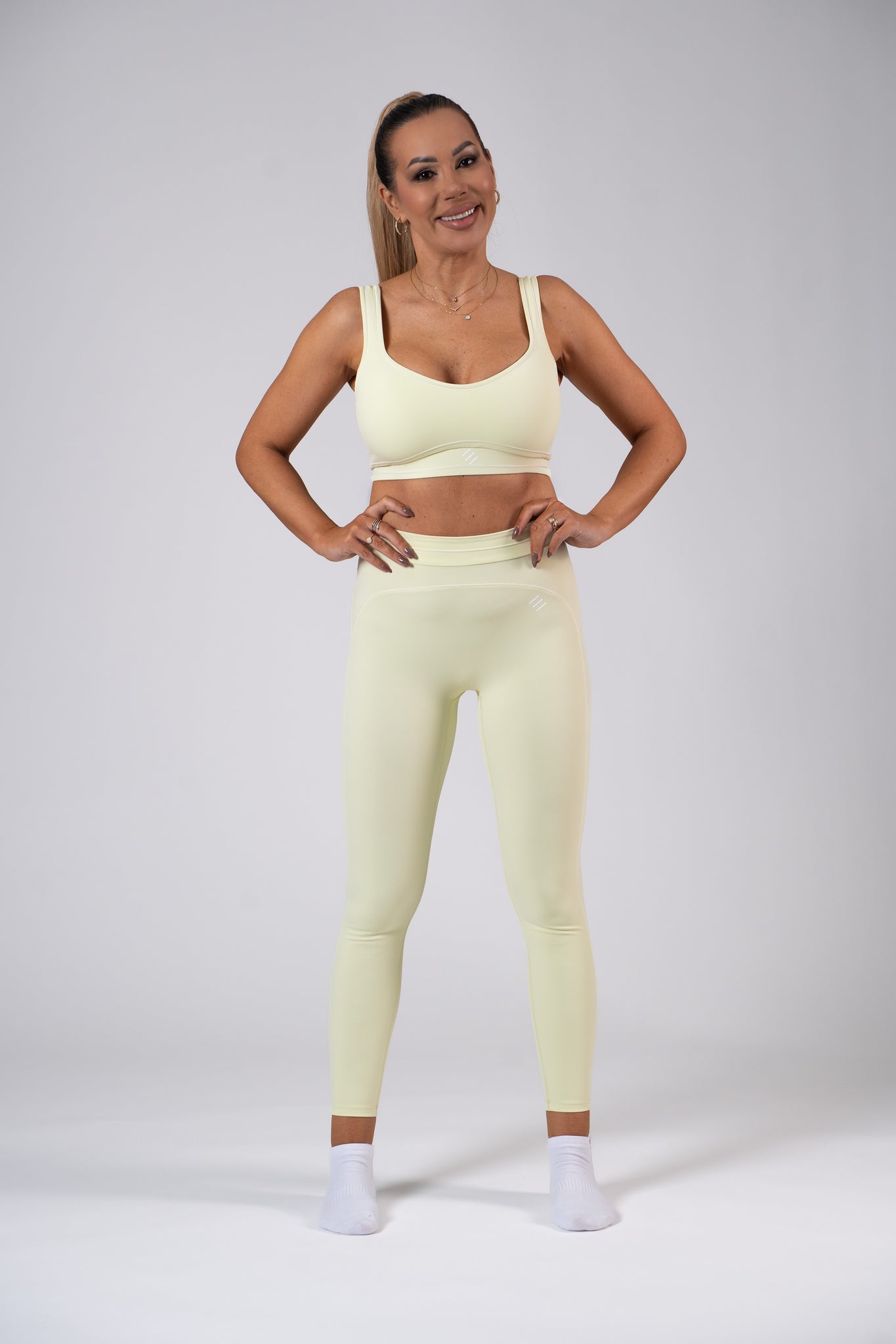 Recognizable brand signatures on the front and back complete the leggings, acting as subtle, minimalist premium details of the Line 1.0 collection.